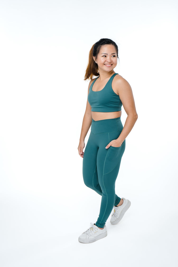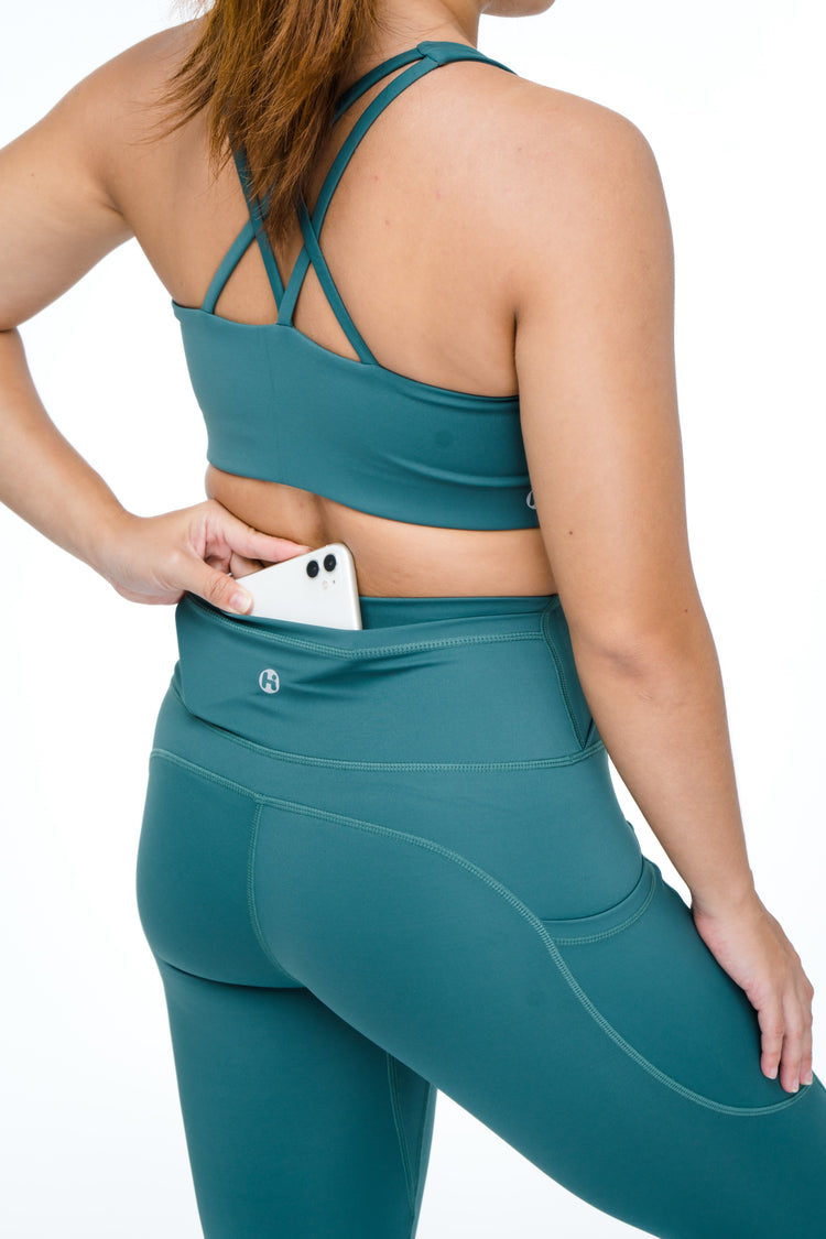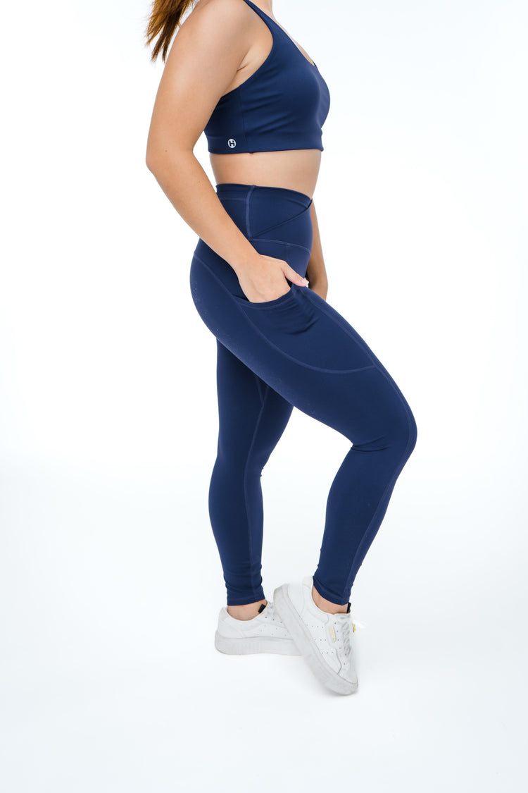 The ultimate pocket leggings! These leggings are suitable for all kinds of activities and they accentuate your waist without digging in with our crossover waist band.